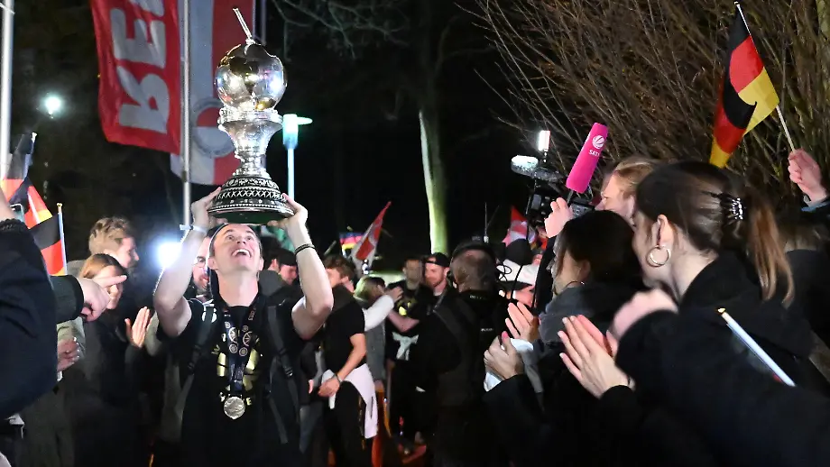 31.01.2023, 07:20 Uhr17 Jahre haben Fans auf diesen Moment gewartet: Deutschlands Hockey-Weltmeister sind wieder daheim - sichtlich glücklich, aber auch mit einigen Blessuren. Während Kapitän Mats Grambusch etwas unvorsichtig mit der Medaille war, war die Feier für Niklas Wellen wohl nur kurz.