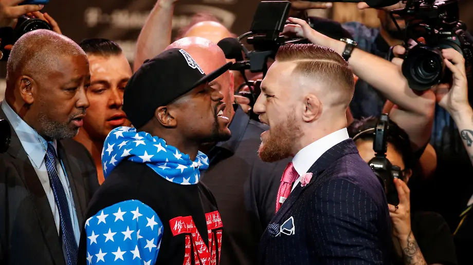 Mayweather ohne RegungMcGregor macht den Hampelmann beim Staredown in L.A.
