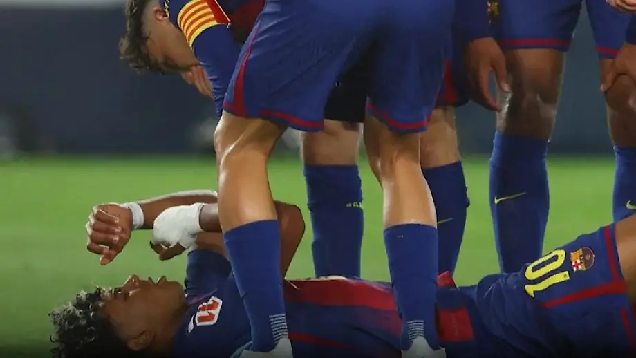 23.04.2026, 11:21 UhrEr trifft - und geht kurz danach zu Boden: Barcelonas Jungstar Lamine Yamal verletzt sich nach einem Elfmeter. Die genaue Diagnose steht noch aus, doch selbst die WM könnte in Gefahr sein.
