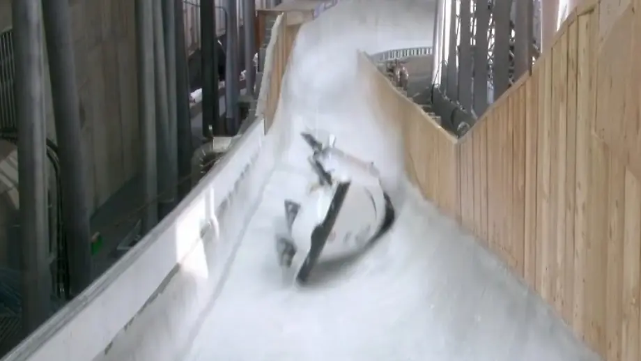 Chaos bei Olympia in CortinaViererbob schlittert ungebremst Eiskanal hinunter