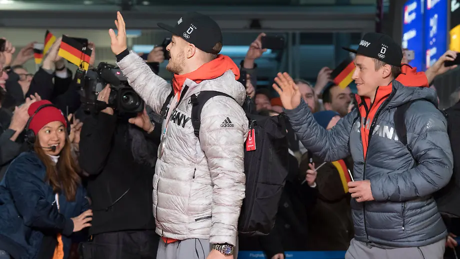27.02.2018, 07:40 UhrDas erfolgreiche deutsche Olympia-Team ist zurück in der Heimat. Jubelnde Fans empfangen einen Großteil der Athleten am Frankfurter Flughafen. Besonders ein Team wird euphorisch begrüßt. Insgesamt bringen die Sportler von den Olympischen Winterspielen in Pyeongchang 31 Medaillen (14 Gold, 10 Silber, 7 Bronze) mit nach Hause.