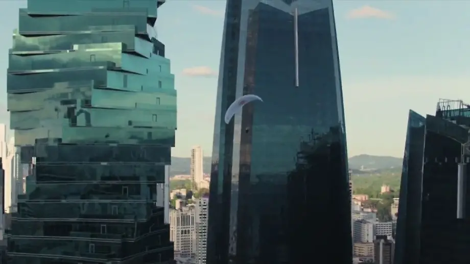 Waghalsige Stunts im VideoParaglider segelt über Wolkenkratzer von Panama-Stadt