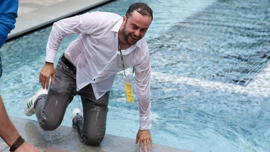 Unfreiwilliges Bad im PoolPodolski verpasst Journalisten eine Abkühlung