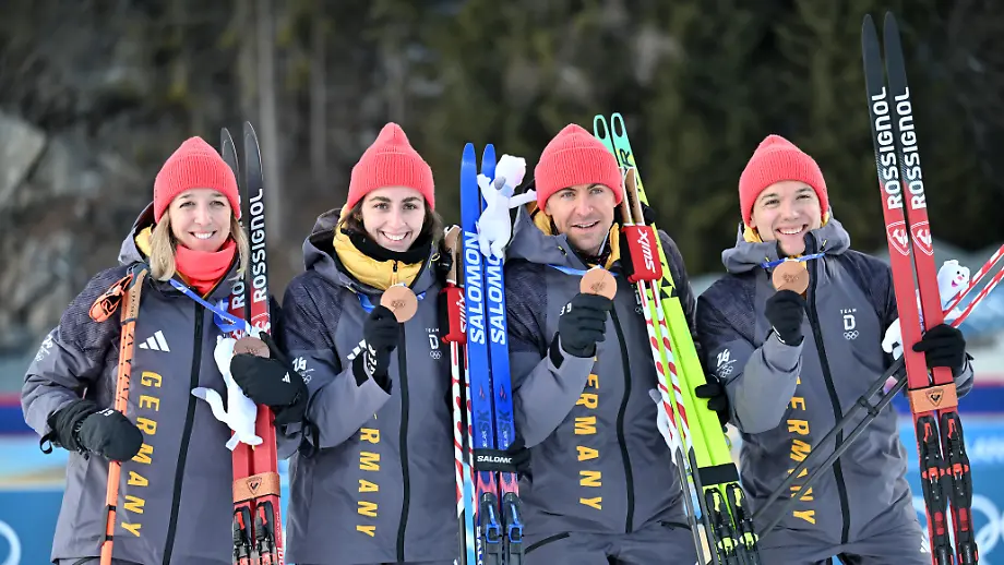 08.02.2026, 18:10 UhrErstmals in den Olympischen Winterspielen holt eine deutsche Mixed-Staffel eine Medaille. Justus Strelow, Philipp Nawrath, Vanessa Voigt und Franziska Preuß sacken beim Biathlon Bronze ein - obwohl Letztere noch ein kleines Drama erleben muss.