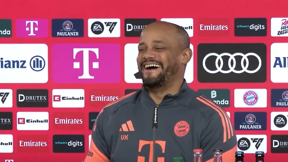 24.01.2026, 10:19 UhrEin Sky-Reporter bringt ein Zitat über Vincent Kompany zur Bayern-PK mit. Der FCB-Coach soll erraten, von wem es stammt. Allerdings kommt ihm jemand anders zuvor und verrät die Lösung. Den Sky-Reporter versetzt das in Rage, Kompany nimmt es mit Humor.