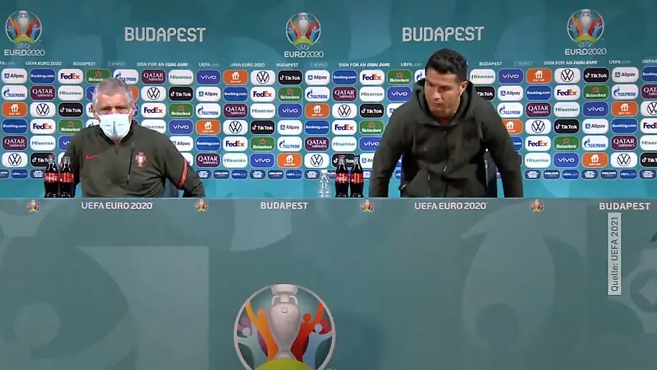 Starstürmer räumt Limonade abRonaldo düpiert Sponsor bei EM-Pressekonferenz