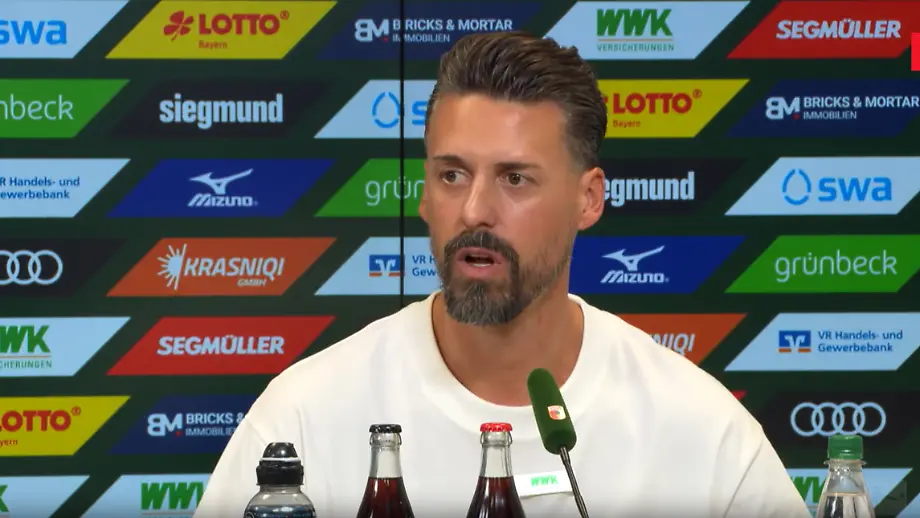 30.08.2025, 22:30 UhrAugsburgs Trainer Sandro Wagner gibt nach dem heftigen Zusammenprall seines Spielers Robin Fellhauer mit Sacha Boey leichte Entwarnung. Anschließend übt er scharfe Kritik am Bayern-Profi und der Reaktion der Münchner Bank.