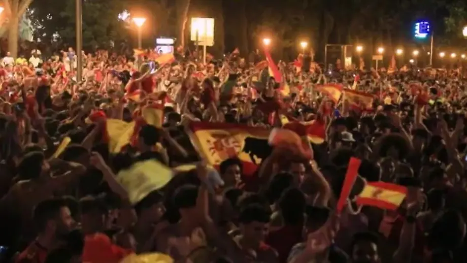 15.07.2024, 08:37 UhrMit einem makellosen Turnier spielt sich Spaniens Fußballnationalmannschaft zum alleinigen Rekord-Europameister. Der Final-Sieg gegen England löst von Madrid bis Berlin riesigen Jubel unter den Anhängern der Furia Roja aus. Die englischen Fans beweisen nach dem Spiel Sportsgeist.