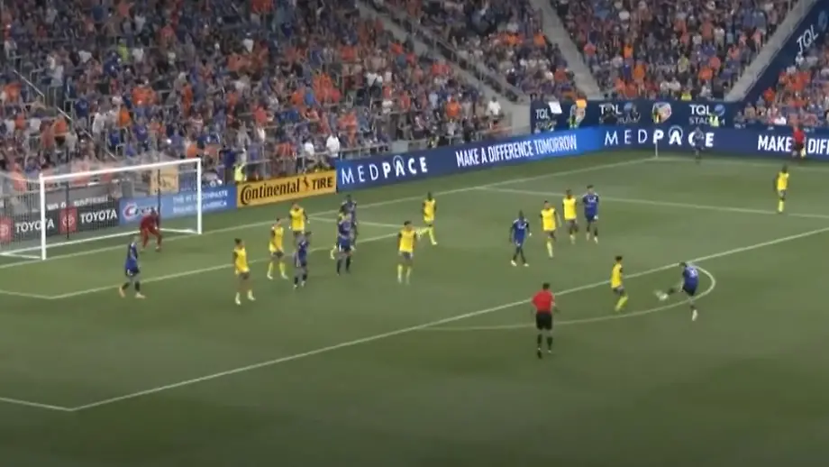 07.06.2023, 11:18 UhrFast das komplette gegnerische Team steht bei dieser Ecke zwischen Cincinnati-Flügelstürmer Barreal und dem Tor. Doch als der Ball im hohen Bogen zu ihm kommt, zieht er einfach ab. Was folgt, ist wahrscheinlich das Tor seines Lebens - mindestens aber der schönste Treffer der US-Pokalsaison.