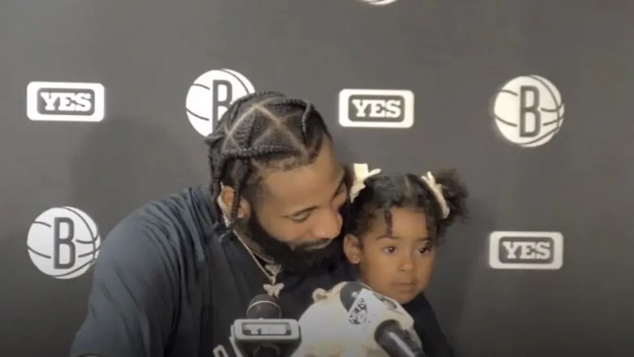 27.03.2022, 13:27 UhrNach einem Sieg seiner Brooklyn Nets widmet sich Andre Drummond den Fragen der Presse. Mit dabei: seine kleine Tochter. Die wäre offenbar lieber woanders, nämlich bei ihrer Mutter. Nach einem abgelehnten Kompromissvorschlag lässt sich Papa Drummond schließlich dazu überreden, die PK zu beenden.