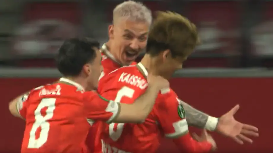 10.04.2026, 07:57 UhrDer 1. FSV Mainz 05 hat nach dem 2:0 im Hinspiel der Uefa Conference League gegen Racing Straßburg gute Chancen auf den Einzug ins Halbfinale. Den Anfang für die Rheinhessen macht der Japaner Kaishu Sano, der mit einem gefühlvollen Schuss in den Winkel den ersten Treffer erzielt.