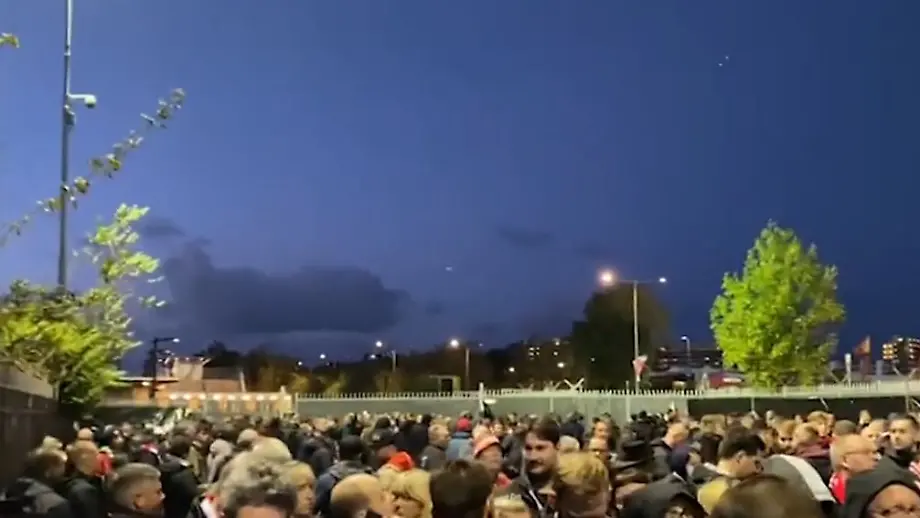 21.10.2021, 20:46 UhrStatt im Gästeblock stehen viele Union-Fans in Rotterdam während des Spiels vor dem Stadion. Auch Berichte über Gewalt seitens der Polizei gegenüber den Anhängern machen in den sozialen Medien die Runde.