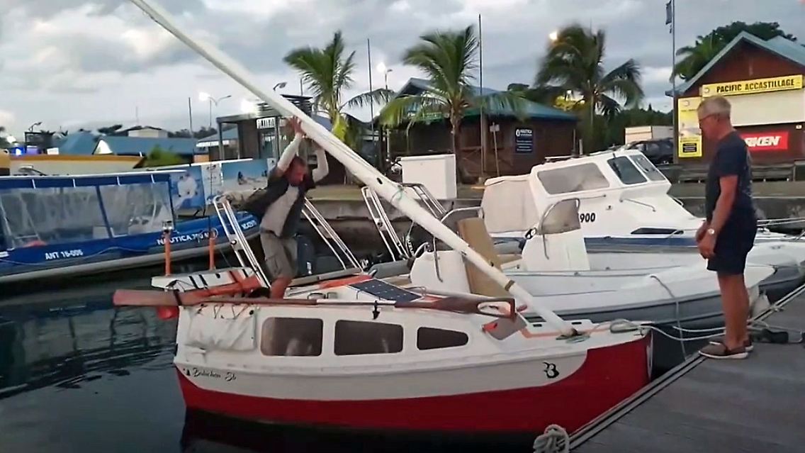 Vor drei Jahren bricht Yann Quenet zu seinem waghalsigen Unterfangen auf: Mit einem für 4000 Euro selbstgebauten Mini-Segelboot will er die ganze Welt umrunden. Nun hat er es geschafft. Mit einem lachenden und einem weinenenden Auge erzählt er von seiner Reise der Extreme.