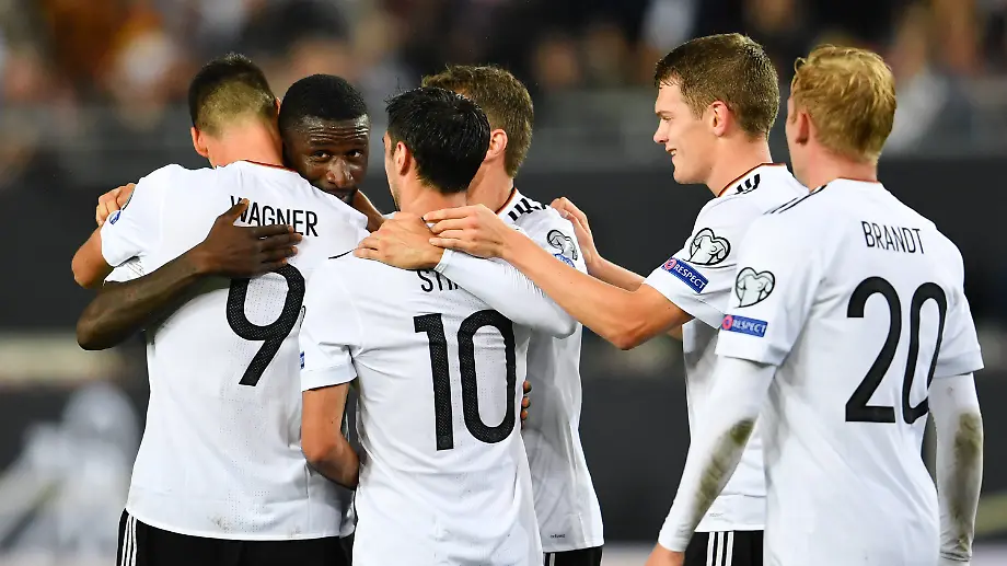 09.10.2017, 10:46 UhrZehn Siege in zehn Spielen und 43:4 Tor: Die Deutsche Nationalmannschaft schließt die WM-Qualifikation mit einem Weltrekord ab. Nach dem 5:1 gegen Aserbaidschan ist Thomas Müller "zufrieden", Antonio Rüdiger weiß nicht, ob sein erstes Tor "wirklich meins war" und Sandro Wagner will "dranbleiben".
