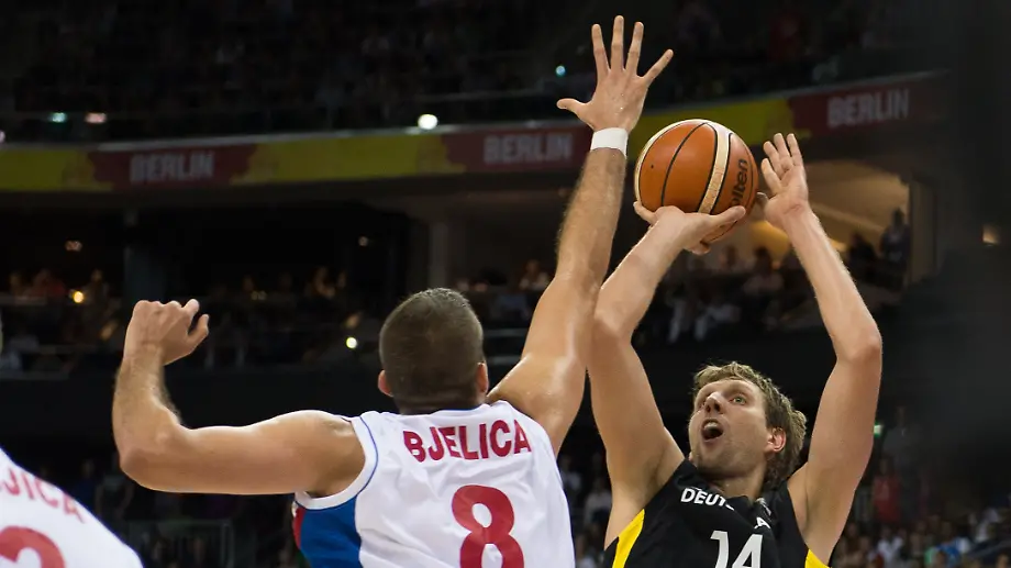 07.09.2015, 13:39 UhrNach dem eher mittelmäßigen Sieg gegen den Basketballzwerg Island überrascht das Team um Dirk Nowitzki mit einer starken Leistung gegen WM-Favorit Serbien. Am Ende verpassen die deutschen Basketballer die Sensation nur knapp. Kein Grund, die Köpfe hängen zu lassen, meint Nowitzki.
