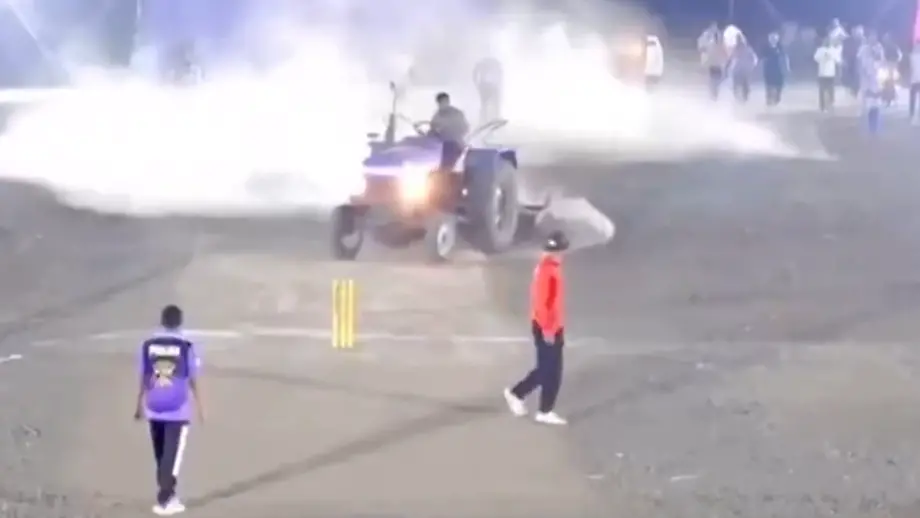 Rache für ausbleibende EinladungWütender Politiker crasht mit Traktor in Cricket-Duell
