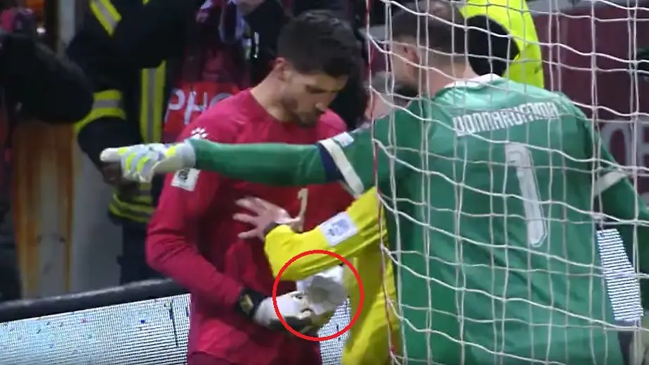01.04.2026, 10:54 UhrTorhüter machen sich für Elfmeterschießen oft Notizen zu den Gegnern und greifen im Showdown darauf zurück. So geht auch Bosnien-Keeper Nikola Vasilj mit Spickzettel ins Duell mit Italien. Offenbar macht sich aber Kontrahent Gianluigi Donnarumma in einem unbeobachteten Moment am Papier zu schaffen. Die Wut ist groß.