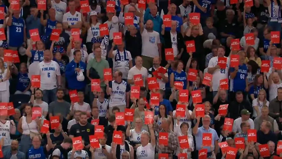 03.09.2025, 20:17 UhrNach einem rassistischen Eklat durch litauische Fans setzen die Veranstalter beim Spiel Deutschland gegen Finnland ein eindeutiges Signal. Die gesamte Halle färbt sich vor dem Anpfiff rot - und Frank Buschmann hofft, dass solche Aktionen irgendwann nicht mehr nötig sein werden.