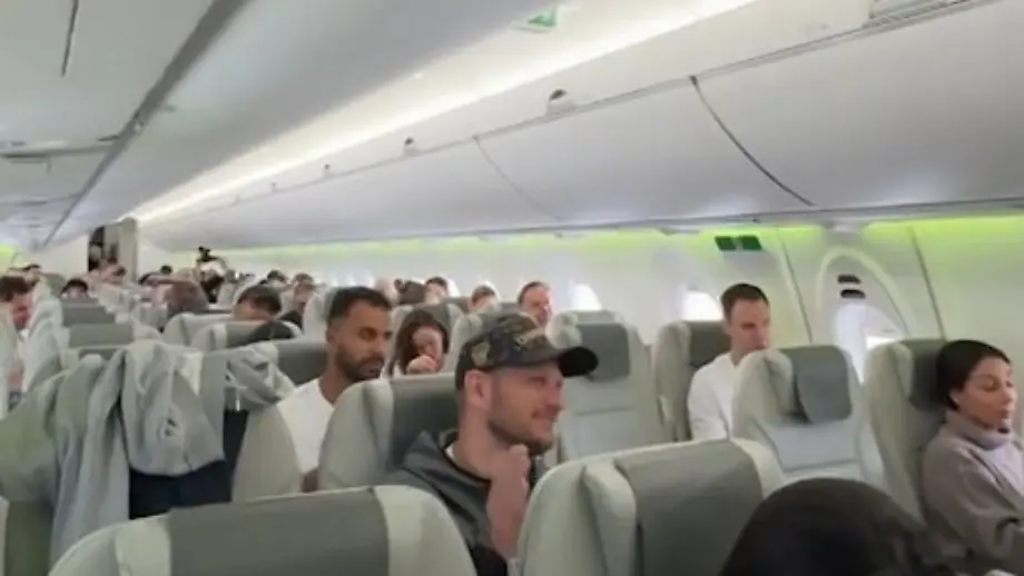 15.09.2025, 12:36 UhrHoch in der Luft und emotional auf Wolke 7: Die frisch gebackenen deutschen Basketball-Europameister fliegen von Riga zurück nach Frankfurt. Dort erwartet die Gold-Mannschaft ein großer Empfang - schon im Flug aber werden sie in höchsten Tönen gefeiert: Der Kapitän der Maschine greift persönlich zum Mikrofon.
