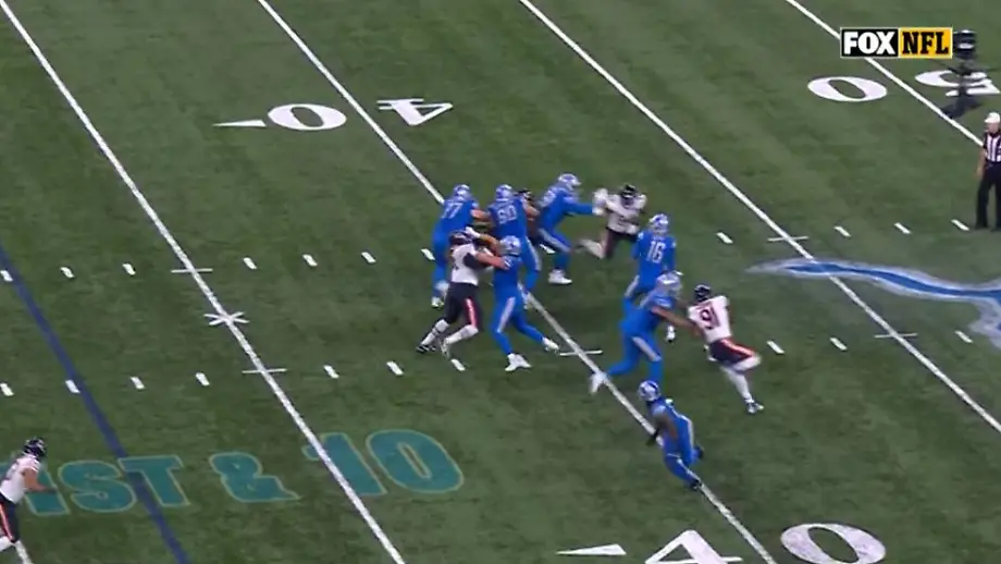 20.11.2023, 09:34 UhrJared Goff erlebt als Quarterback der Detroit Lions gegen die Chicago Bears einen Abend zum Vergessen. Gleich dreimal wirft er dem Gegner den Ball in die Hände. Erst drei Minuten vor Schluss, und dennoch gerade rechtzeitig, findet er seine Normalform.