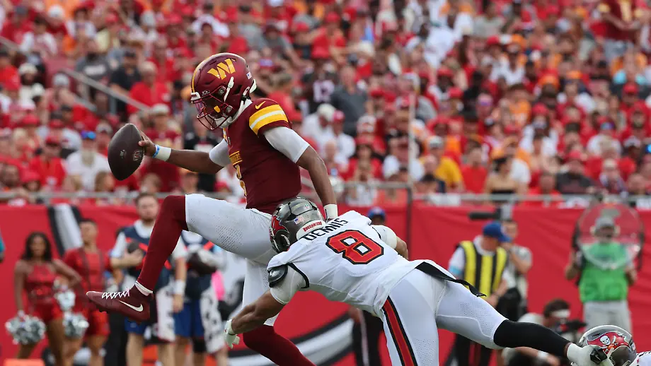 09.09.2024, 11:58 UhrIn der NFL kommt es am ersten Spieltag zum Spiel der Washington Commanders gegen die Tampa Bay Buccaneers und damit auch zum Duell zwischen dem in Topform auflaufenden Quarterback Baker Mayfield und NFL-Neuling Jayden Daniels.
