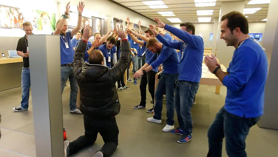 20.09.2013, 12:05 UhrDie Fans kampieren schon vor dem Verkaufsstart der neuen iPhones vor den Läden. Sie wollen die Ersten sein, die ein iPhone 5C oder 5S in den Händen halten. Mit Jubel werden sie von den Mitarbeitern für ihren Kauf beglückwünscht.