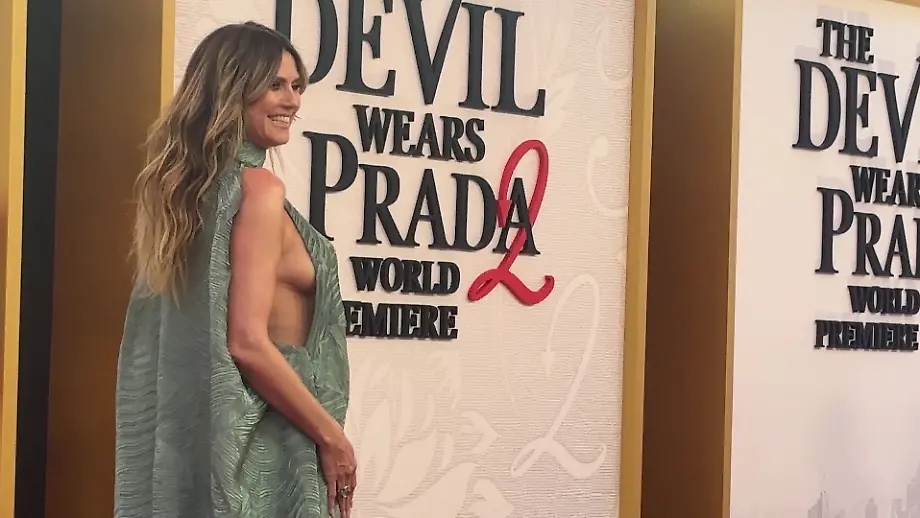 21.04.2026, 13:10 Uhr"Der Teufel trägt Prada 2" feiert Premiere in New York. Neben den Hauptdarstellerinnen Meryl Streep, Anne Hathaway und Emily Blunt läuft auch Heidi Klum über den roten Teppich Und ihr Kleid ist ein echter Hingucker: vorne hochgeschlossen, seitlich ganz schön freizügig.