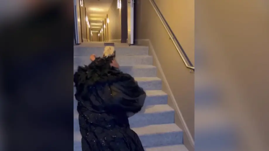 13.02.2026, 15:46 UhrEigentlich möchte Evelyn Burdecki nur ihr Abendkleid für den Wiener Opernball präsentieren, als sie plötzlich auf der Treppe ausrutscht. Wenig überraschend, denn die Schleppe ist ganze fünf Meter lang. Sie ist, ebenfalls wenig überraschend, nicht der einzige Star, der sich bei dem Event blicken lässt.