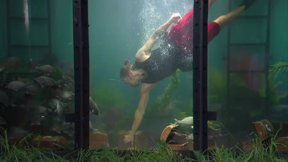 02.02.2026, 09:31 UhrUnter Wasser, umgeben von Schlangen, Echsen und Krokodilen: Gil Ofarim muss Schlüssel ertauchen, um Sterne für das Team zu sichern. Und siehe da: Der Musiker stellt sich ordentlich an und liefert ab.