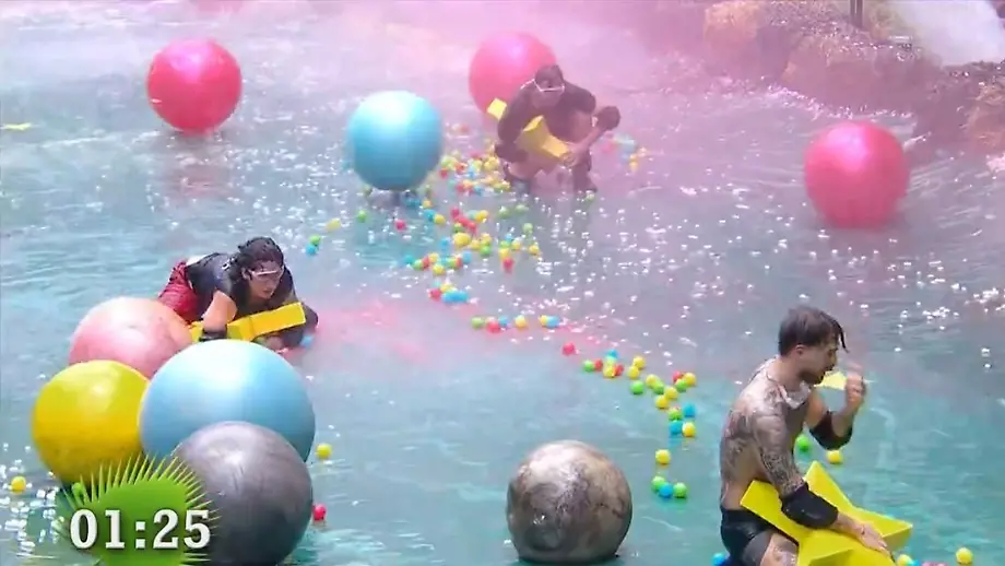 "Creek der Sterne" im DschungelHalbfinalisten müssen Flut bunter Riesen-Bälle trotzen