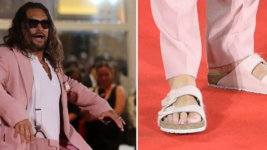 Lackierte Nägel in BirkenstocksJason Momoa wagt modischen Stilbruch in Pink