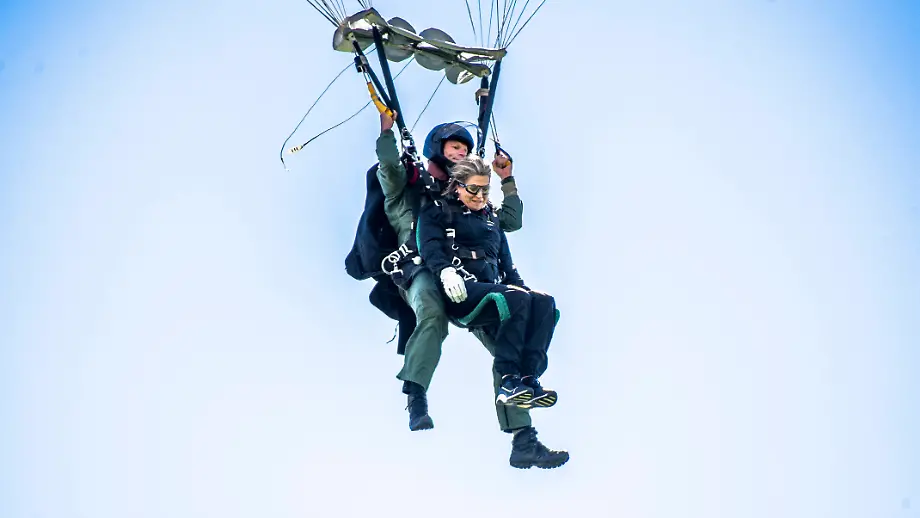 "Habe echt nach Luft gerungen"Königin Maxima wagt Fallschirmsprung