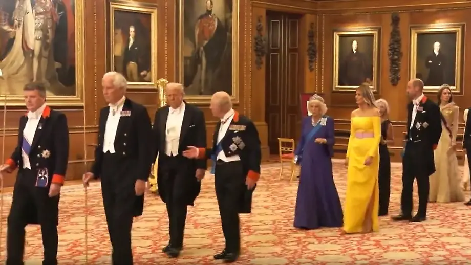 Hinter Donald im vornehmen FrackMelania Trump sticht bei Royal-Empfang auffällig hervor