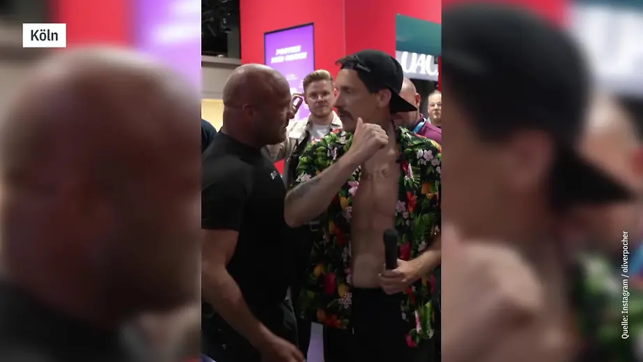 20.04.2026, 18:27 UhrAuf der Fitness-Messe Fibo in Köln kommt es zur Konfrontation zwischen zwei Social-Media-Persönlichkeiten. Der Comedian Oliver Pocher wird des Geländes verwiesen. Auslöser ist ein seit langem schwelender Konflikt um einen heiklen Vorwurf.