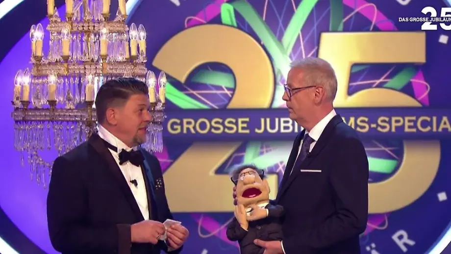 14.10.2024, 18:55 UhrEin Orchester, ein Jubiläumsbuzzer und ein Gedicht von Koch-Rüpel Tim Mälzer - gleich zu Beginn wird Showmaster Günther Jauch klar, diese Ausgabe von "Wer wird Millionär" wird anders als andere. Zum 25-jährigen Jubiläum der Sendung gibt es eine ganze Reihe an Überraschungen für den Moderator und das Publikum.