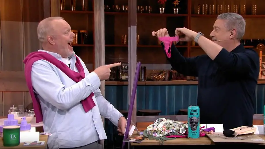 04.06.2025, 12:11 UhrTanga, Parfüm, Eierlikör: In der dieswöchigen Folge von DGHNDMBSR bekommt Moderator Stefan Raab mal wieder tatkräftige Unterstützung. Gemeinsam mit "Let's Dance"-Juror Joachim Llambi werden Promi-Produkte auf Herz und Nieren geprüft.