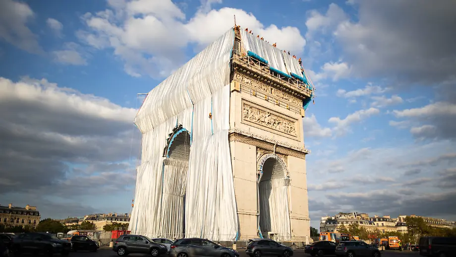 16.09.2021, 15:42 UhrJahrzehntelang plant das mittlerweile verstorbene Künstlerehepaar Christo und Jeanne-Claude das Projekt, nun ist es endlich verwirklicht: Der Triumphbogen in Paris steht in Polypropylen-Gewebe eingehüllt wie ein Geschenkpaket in der Stadt. Ein Zeitraffer-Video zeigt die Verwandlung des Denkmals.