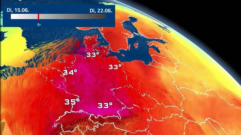 16.06.2021, 19:55 UhrDer Sommer in Deutschland dreht auf. Die Hitze schwappt in zwei Wellen über das Land, unterbrochen von einer turbulenten Abkühlung. Zum Wochenende mischt auch noch Staub aus der Sahara mit und macht Blutregen möglich. Meteorologe Björn Alexander fasst die Wetterlage zusammen.