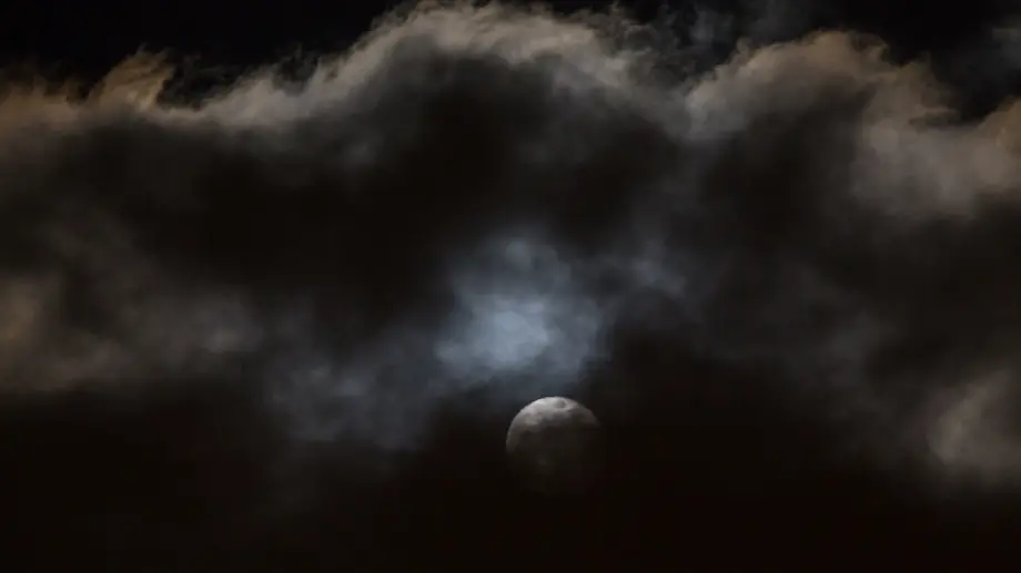 Dichtes Grau und NebelNacht fröstelt in Wolkenlücken