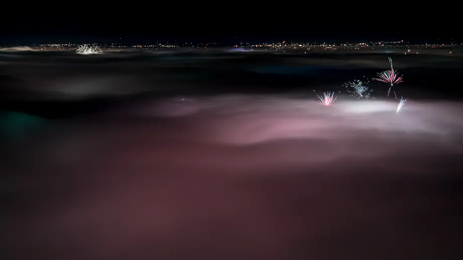 Kaum freie Sicht aufs FeuerwerkWolken und Nebel hängen tief über Silvesternacht