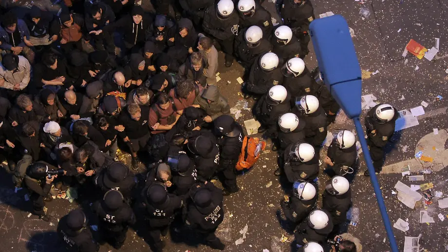 Harter Polizeieinsatz in BrüsselBeamte kesseln Blockupy-Aktivisten ein