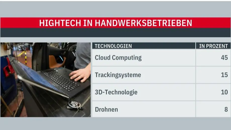 08.07.2022, 20:45 UhrDas Handwerk investiert während der Corona-Pandemie stark in die Digitalisierung. Das ergibt eine Umfrage des Digitalverbands Bitkom und des Zentralverbands des deutschen Handwerks. Wesentliche Gründe für den Einsatz der Technologien sind Zeitersparnis und Mitarbeiterentlastung.