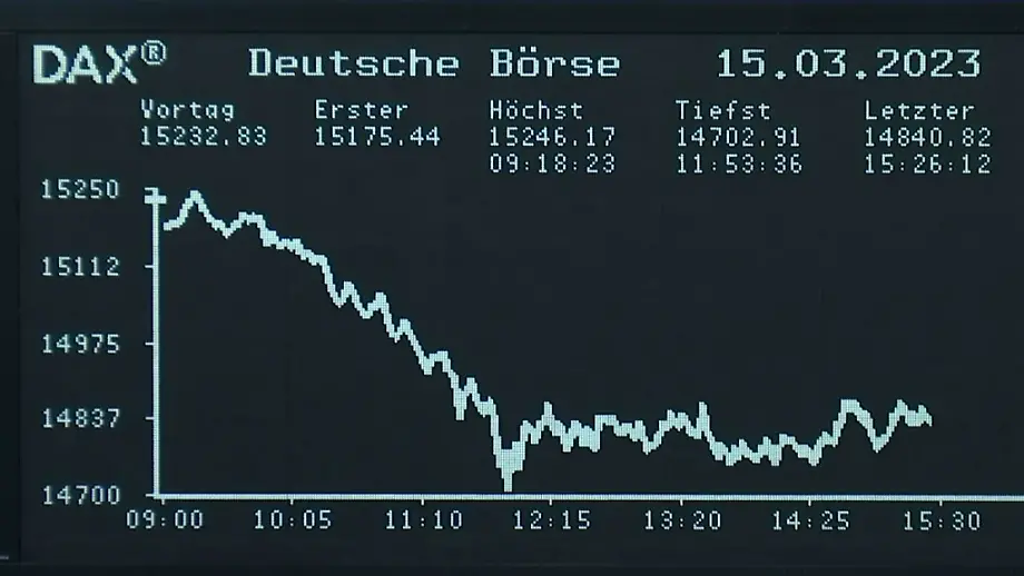 15.03.2023, 17:33 UhrDer Zusammenbruch der Silicon Valley Bank in den USA und die zunehmenden Sorgen um die Schweizer Großbank Credit Suisse sorgen für heftige Turbulenzen an den Börsen. ntv-Dax-Reporterin Nancy Lanzendörfer und Wall-Street-Korrespondent Markus Koch berichten über das Geschehen auf dem Parkett.