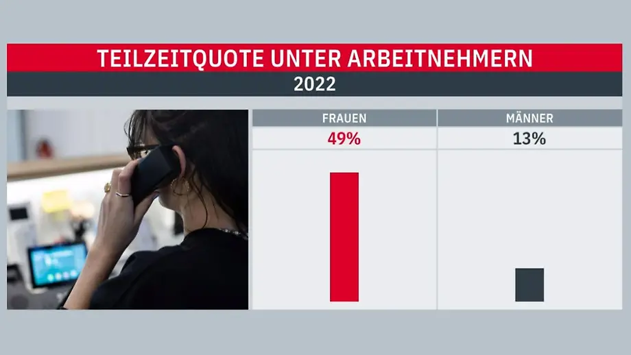 Bei Männern nur 13 ProzentFast jede zweite Frau arbeitete 2022 in Teilzeit