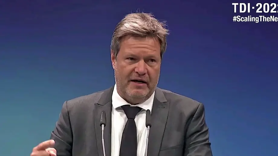 21.06.2022, 20:07 UhrWirtschaftsminister Habeck ruft beim "Tag der Industrie" des Bundesverbands der Deutschen Industrie zur Erschließung neuer Import- und Exportmärkte auf. Die Handelsbeziehungen mit China müssten überdacht werden. Als der Minister deutlich die Redezeit überschreitet, kommt es zu Lachern im Saal.