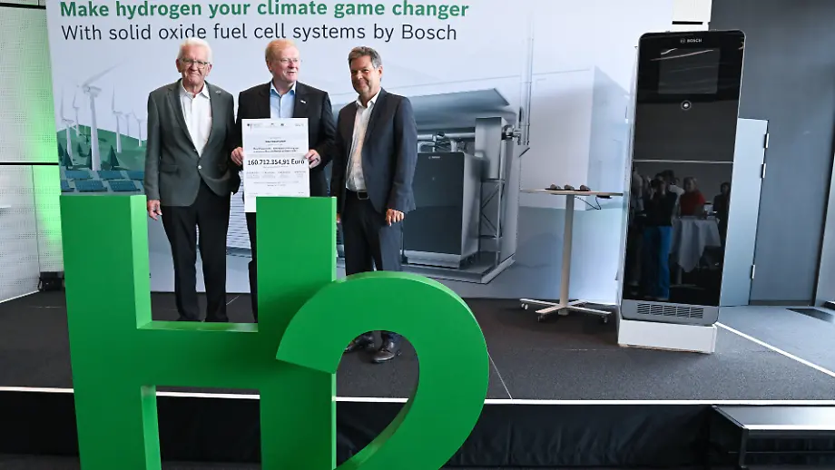 In Höhe von rund 161 Millionen EuroHabeck überreicht Bosch Förderbescheid für Wasserstoff