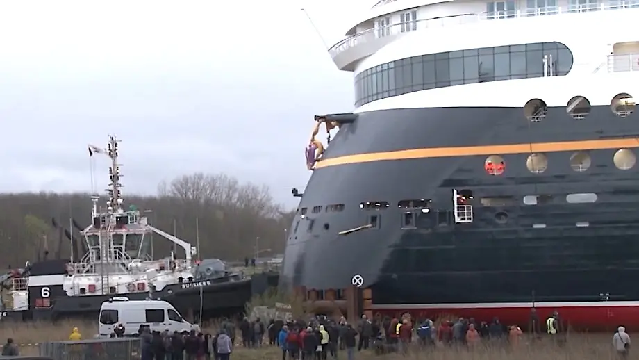 Von Meyer-Werft Richtung NordseeKreuzfahrtkoloss "Disney Wish" zwängt sich durch Ems