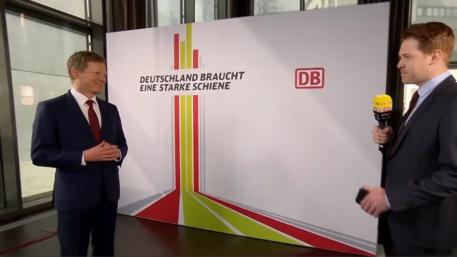 26.03.2021, 13:41 UhrDie Bahn ist durch Corona schwer getroffen, der Verlust wird auf 5,7 Milliarden Euro beziffert. Im Interview bekräftigt Bahn-Chef Lutz dennoch weitere Investitionen. Auf die Frage nach einer Erhöhung der Ticketpreise hat er eine deutliche Antwort.