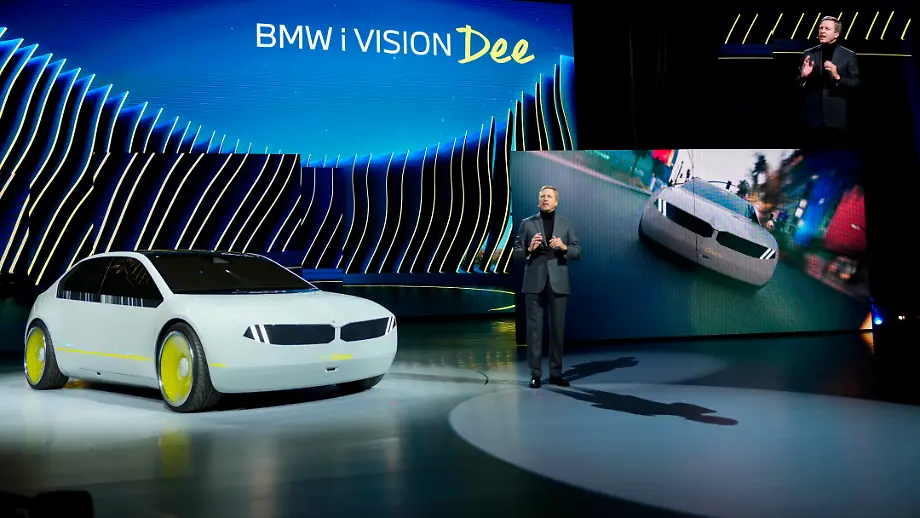 05.01.2023, 14:03 UhrAuf der CES präsentiert BMW-Vorstand Zipse "das nächste Level der Mensch-Technik-Interaktion": das Modell "Dee", ausgestattet unter anderem mit einer Display-Windschutzscheibe. Die Elektronikmesse ist eine wichtige Plattform für die Automobilbranche, die nach neuen Impulsen sucht.