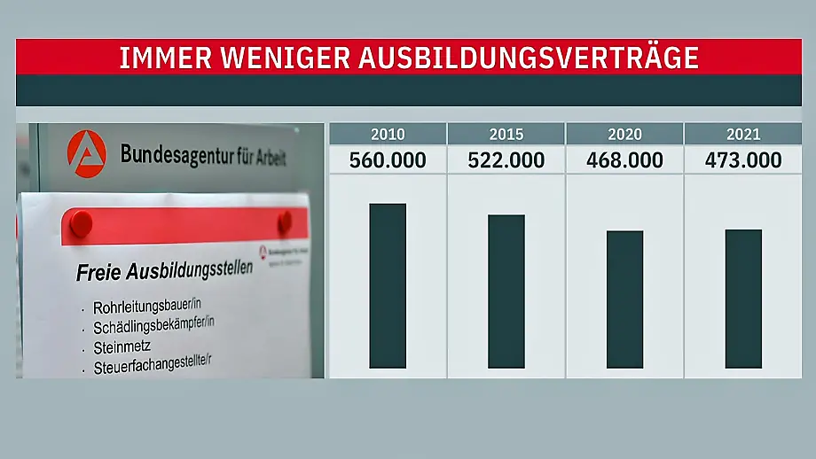 26.04.2022, 15:16 UhrLaut IW bleiben ganze 40 Prozent aller Ausbildungsstellen zurzeit unbesetzt. Nicht nur im Handwerk, auch in der Metall- und Elektroindustrie sowie der IT-Branche ist der Mangel besonders groß. Vor allem Arbeitgeber sind laut IW jetzt in die Pflicht genommen.